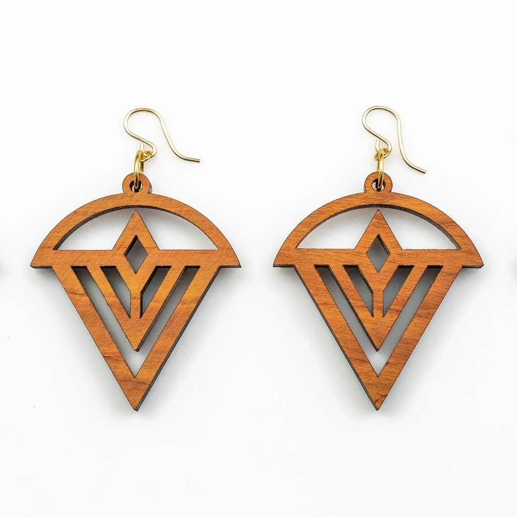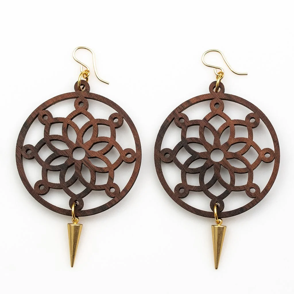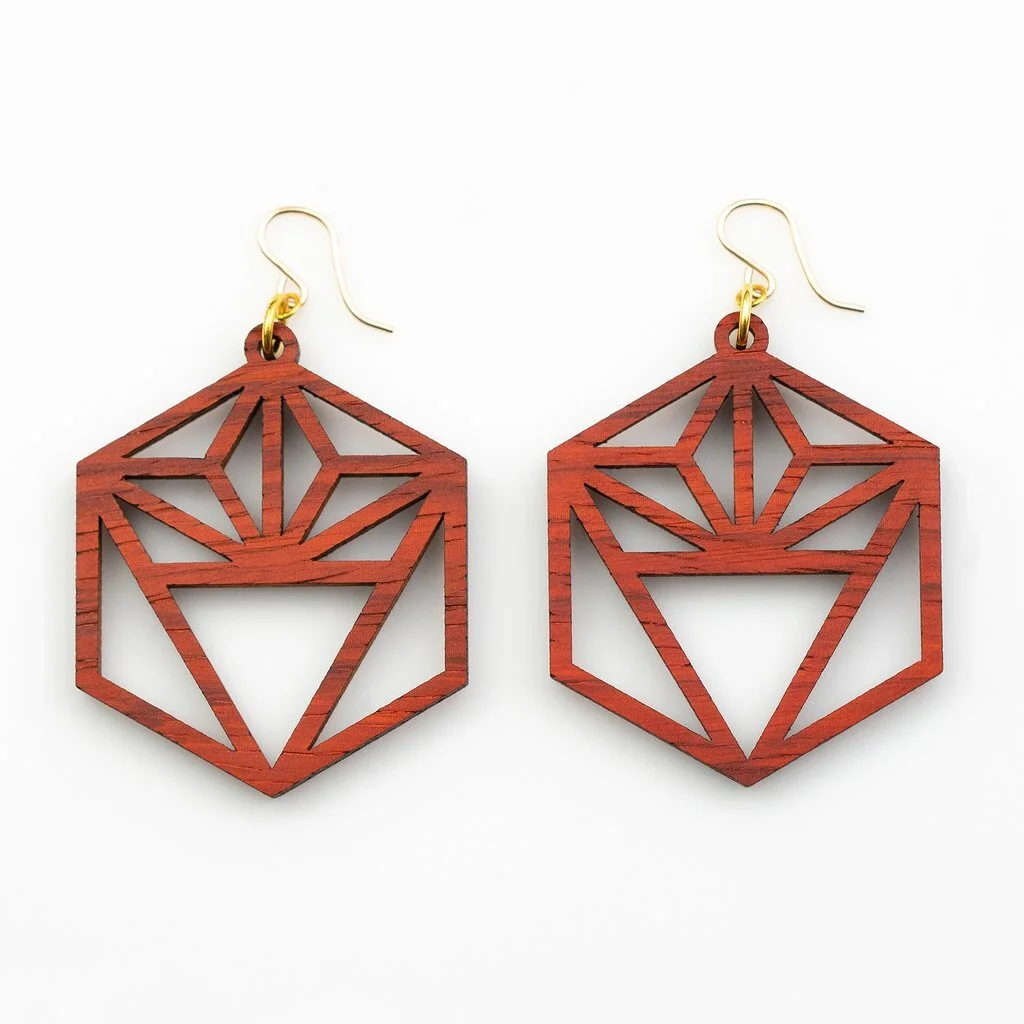 I selected three types of hardwoods for the newest collection: Cherry, African Padauk and Bolivian Rosewood. All of the earrings feature 14k gold filled ear wires which are well suited for sensitive ears, as well as gold-plated hardware and decorative components.